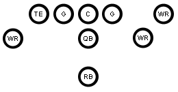 offensive line at the start of the play. These players shall be a center and two guards, who are not eligible receivers and must stay in to block, and one tight end, who is an eligible receiver. Also, at the start of the play each guard must be covered by at least one eligible receiver. See the diagram below.